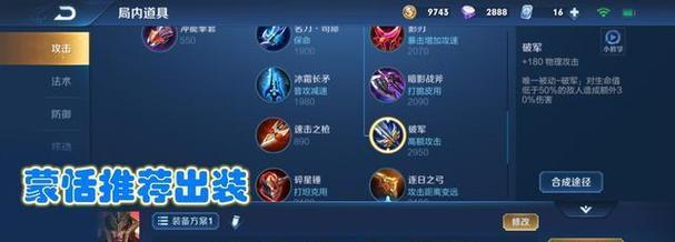 出装选择:选择适合蒙恬辅助打法的装备